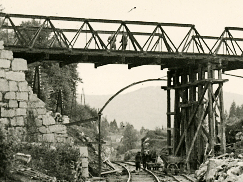 Časnik Slovenski narod je 9. maja poročal, da sta bila na Rakeku svečano odprta za promet dva mostova, ki so ju zgradile železniške inženirske enote na progi Postojna – Logatec. Ta na sliki je pri Logatcu, drugi je bil most v Delah na Rakeku. Otvoritveni vlak je navsezgodaj odpeljal iz Postojne do Logatca. Tako na končni kot na vseh vmesnih postajah so ga svečano sprejeli. Oba mostova sta bila železna. Eden je bil dolg 30 metrov in je tehtal 60 ton, drugi je meril 27 metrov in tehtal 54 ton. Njuna nosilnost je bila 75 ton. Inženirske čete so popravile tudi progo med Planino in Logatcem. Za to so porabile približno 10 ton kubičnih metrov kamenja in gramoza.