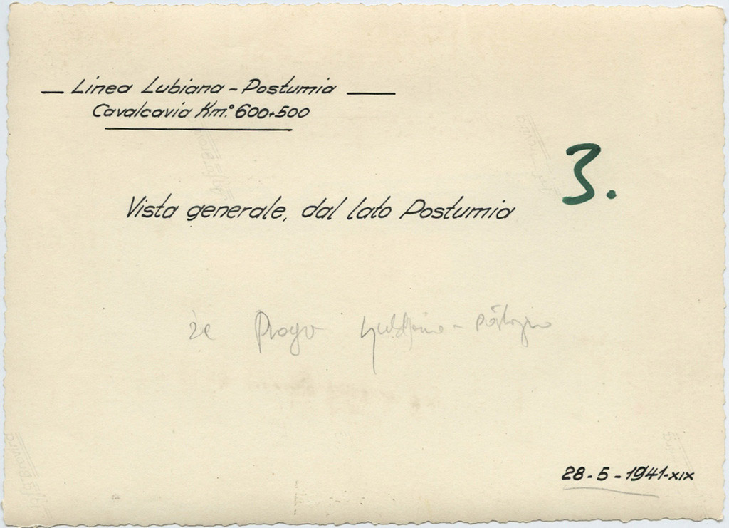 Most med kilometrskima kamnoma 600-500 po italijanski navedbi – po navedbi gospoda Rustje, ki mu bolj verjamem, pa med kamnoma 600-885 – je ob umiku podrla jugoslovanska vojska. Jeklenega, da je promet lahko stekel, so postavili v osmih dneh, kot smo povedali že pri eni od prejšnjih slik.