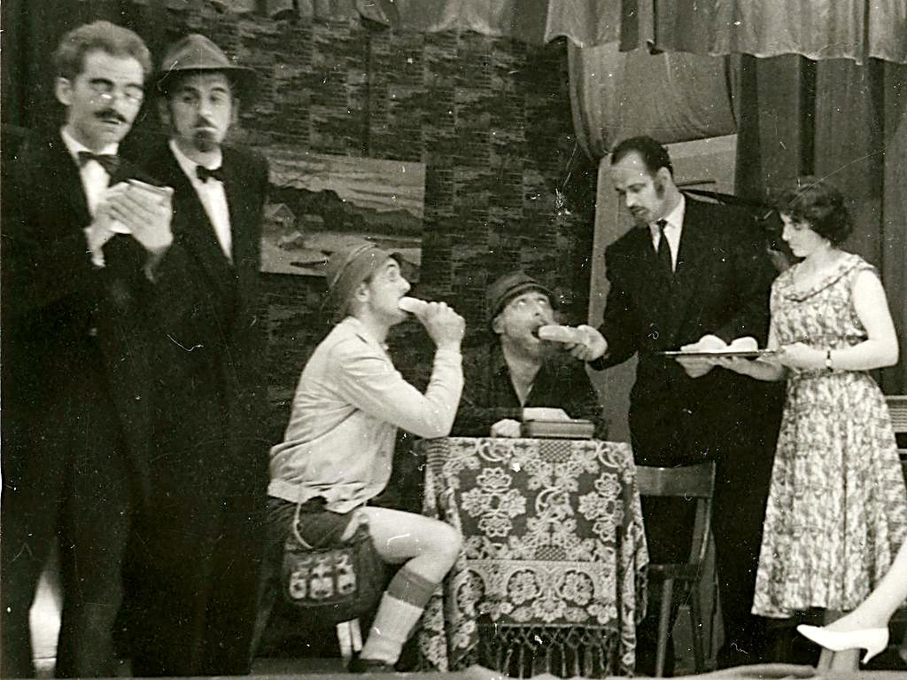 Prizor je iz komedije Veleturst. Amatersko gledališče Stari trg jo je uprizorilo 1959 leta, režiral pa jo je režiser Jože Stanič. Bil je velik ljubitelj komedije in prav Veleturist je bila med prvimi igrami, ki jih je režiral v Loški dolini.