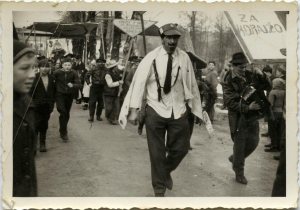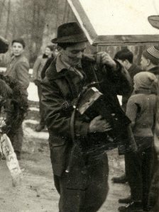 Kdaj točno je fotografija neznanega fotografa nastala, ne vem, vsekakor okrog leta 1960, morda leto prej ali pozneje. Fotografija prikazuje priprave na Pustov pogreb pred Žajfnco.