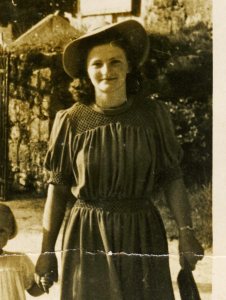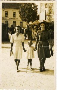 Slika je nastala leta 1943 v obzidju pred cerkniško cerkvijo na lep sončen dan. Slikani sta sestri Slava in Darinka Logar in Slavina hčerka Ladi. Neznani fotograf jih je prav počakal, ko so se približevale cerkvi. Lepo so se mu nasmehnile. Oblečene v lepe poletne obleke, mati in hči imata celo obleke iz enakega blaga. Darinka ima na glavi čudovit klobuček, v rokah imata male ročne torbice, tako kot pravi dami. Vse tri imajo skrbno urejene pričeske.