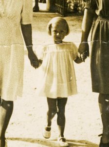 Mala, lepo počesana štiriletna Ladi v svoji beli oblekici deluje malce prestrašeno, kar sploh ni čudno ob vseh teh vojakih s puškami. In potem se pred tabo pojavi še neznan stric, ki te prosi za nasmeh, to je pa že preveč za tako mlado deklico.