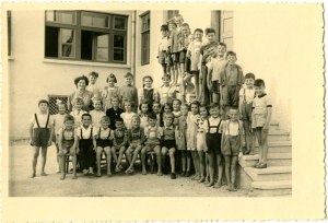 Fotografija je nastala neko jesensko popoldne, ker so takrat učenci od prvega do četrtega razreda obiskovali pouk popoldne. Prav hladno ni bilo, saj so nekateri fantje bosi in samo eden je v dolgih hlačah.