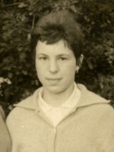 Vida Brodarič por. Ožbolt in Jožica Hribar por. Novak sta se slikali ob cvetočem grmu med počitnicami po končanem prvem letniku poklicne šole. Vida je obiskovala frizersko, Jožica pa trgovsko šolo. Ker je bila Vida članica fotografskega krožka pod mentorstvom Jožeta Bergleza, ju je najbrž slikal nekdo od članov. Jožica se je za to priložnost oblekla roza jopico in teritalko, ki je bila takrat moderna, Vida pa ji je parirala z lepim nabranim krilom z atraktivnim vzorcem in nežno majico v eni od barv, ki so bile v krilu.
