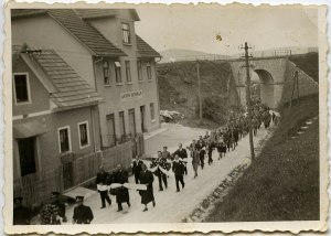 Pogrebni sprevod gre od hiše (ne vemo točno, katere), kjer je pokojnik ležal od smrti do pogreba. Povorka bo na križišču zavila proti železniški postaji, šla mimo Gasilnega doma in cerkve na pokopališče, kjer bodo pokojnika položili k zadnjemu počitku. Sklepam, da pogreb ni bil cerkven, ker je bil Nikolaj kot Rus pravoslavne vere in ni bilo popa v bližini.