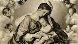 Na prednji strani podobice je božja mati Marija z Jezusom v naročju.