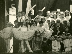 Na sliki Janko in Metka s čarovnico in drugim delom baletk, škratov in ostalih nastopajočih.
