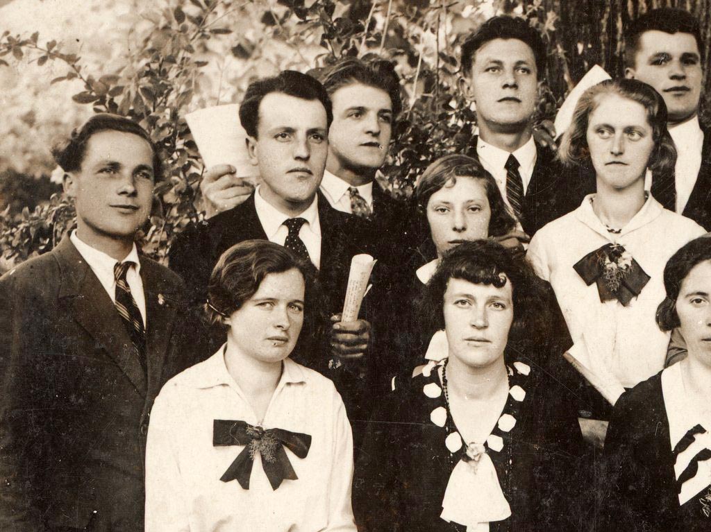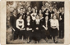 Fotografirani so verjetno pred lipo pri cerkvi, vsaj po skorji na deblu za njimi sodeč.