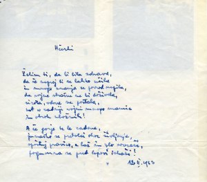 Na sliki je rokopis pesmi, posvečene njegovi hčerki, v kateri ji želi in naroča …