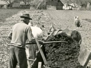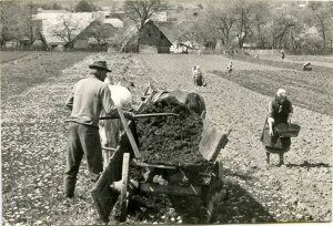 1960 Vrhnika – Palščov Lojze vozi gnoj, Antončičeva mama pa nametajo krompir