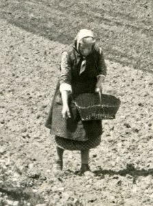 Vrste oziroma grabnčki, ki so jih morda naredili s čártalam, so bolj plitve in jih je komaj videti, vitre na košari se že nekoliko drobijo in Antonščevo mamo najbrž boli križ, zato z vajeno roko malo bolj od daleč v enakomernih presledkih nametava gomolje krompirja v zemljo. Členki na prstih so ji otekli in za drobna dela najbrž nima več pravega občutka – da pa bi se delu na zemlji izognila ali ga preložila na koga drugega, niti pomisli ne. V zadovoljstvo ji je, da je vreme primerno, da je njiva dobro pripravljena, da semenski krompir ni zgnil in lepo kali – vse kaže, da bo ob normalnem trudu in z malo sreče mogoča še ena dobra letina, pa bo za eno leto krompirja dovolj za ljudi in živali. Veliko izkušenj z njivami ima, veliko krompirja je v življenju že nametala in pobrala. In ob krompirju kot glavni hrani preživela še veliko drugega.