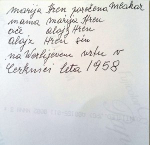 Na sliki iz leta 1958 je vsa družina Hrenovih iz Cerknice: hčerka Marija Hren, mama Marija, oče Alojz in sin Slavko Hren, takrat star 22 let.