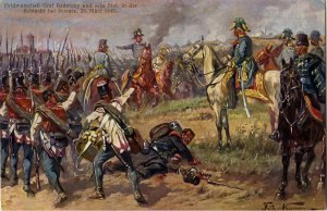 Slika predstavlja feldmaršala Josefa Radetzkyja in njegov štab v bitki pri Novari, 23. marca 1849. Naslikal jo je Fritz Neumann. Velika je 27,5 cm krat 17,5 cm. Spada v cikel bojnih prizorov cesarske avstrijske vojske.