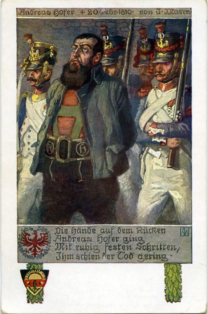 Verzi na razglednici so iz pesmi Iz Mantove zvezan (znana tudi kot pesem Andreasa Hoferja). Je ena najbolj priljubljenih ljudskih pesmi. Ima šest kitic. Od leta 1948 je uradna himna sedanje avstrijske dežele Tirolske. Besedilo je napisal nemški pisatelj Julus Mosen leta 1831. Uglasbil jo je nemški skladatelj Leopold Knebelsberger leta 1844. Govori o smrti Andreasa Hoferja. Slavi ga kot glavnega junaka pan-nemškega gibanja v avstrijskih deželah in borca proti italijanskemu iredentizmu. Od leta 1972 je z zakonom prepovedano prepevati parodije ali kakor koli spremenjeno besedilo te pesmi na način, ki bi žalil prebivalce Tirolske. Kazen je 2.000 evrov. Kljub temu je priljubljena socialistična pesem Dem Morgenrot entgegen (Proti zori) napisana na njeno melodijo. Leta 2004 so jo zapeli na zborovanju SPÖ. Zaradi tega je tirolski guverner vložil pritožbo, stranka SPÖ je vložila odgovor na pritožbo in ustavno sodišče je slednjemu ugodilo.