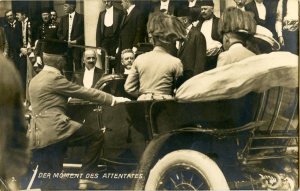 Neka brihta je na fotografijo v nemškem jeziku napisala »v trenutku atentata«. Vendar je slika nastala kasneje, ko je bil prvi napad že mimo. Stebri na sliki dajo vedeti, da je nastala pred sarajevsko mestno hišo.