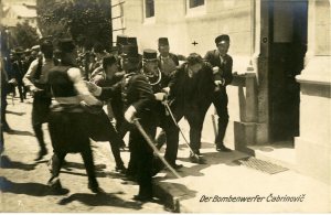 Kljub poizkusu bega so Nedeljka Čabrinovića po atentatu ujeli. Na sliki vidimo, kako ga vlečejo na policijsko postajo. Ko so ga prijeli, je dejal: »Jaz sem srbski junak!«
