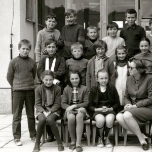 Z razredničarko Hedo Perovič se je v šolskem letu 1969/70 slikalo 26 učencev 5. a razreda. Razred je sestavljalo 14 deklet in 12 fantov. Velika večina je bila iz Cerknice, ter trije iz Dolenje vasi, dve dekleti iz Zelš in en učenec iz Dolenjega Jezera. Med njimi sta brata Jože in Srečo. Vidimo učenca, ki ima roko v mavcu. Je bil kriv nogomet, pretep ali kakšna druga “delovna” poškodba?