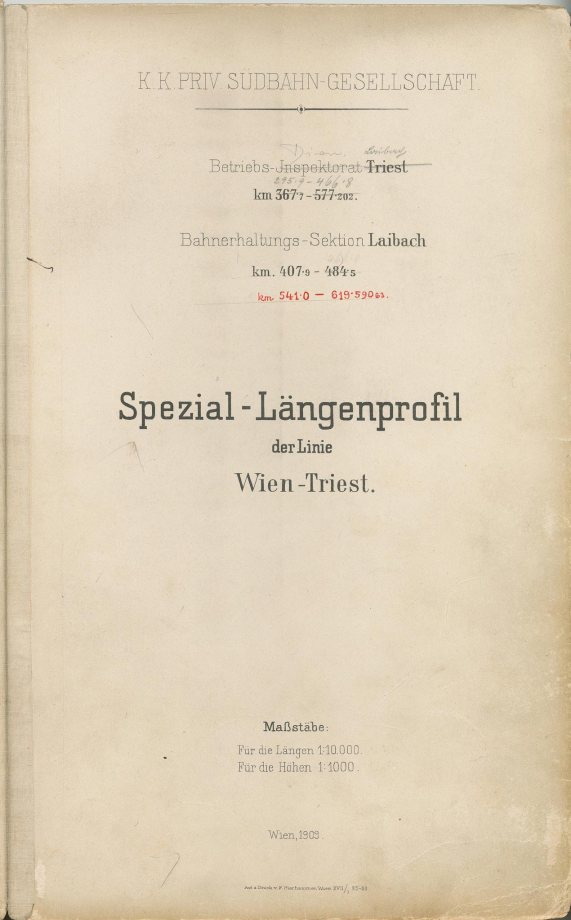 Naslovnica načrta vzdolžnega profila proge Dunaj – Trst, Ljubljanska sekcija