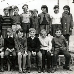 V šolskem letu 1966/67 so se učenci 4. razreda osnovne šole Grahovo slikali pred svojo šolo, s povsem novo fasado. Z njimi je mladi učitelj in razrednik Slavko Kranjc. Po zapisu na hrbtni strani vidimo, da je razred obiskovalo 22 učencev, čeprav smo jih na sliki našteli le 21. Ugotovilo se je, da je na dan slikanja manjkala Ida Švigelj. Razred se je lahko pohvalil z dvojčkoma iz Žerovnice, to sta bila Anica in Vinko Mavko. V prvi vrsti največkrat sedijo manjše deklice. Tukaj pa je prva vrsta nekaj posebnega. Tu so se posedli mešano: fant, dekle, fant, dekle … Prav lepo jih je videti. Le čigava ideja je to bila?