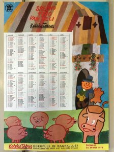 Ja, prihaja čas kolin. Lep praznik z ogromno dela, ob omembi katerega se nam pocedijo sline in ima v veliki večini primerov za stranski produkt svinjske kože. Zanje še vedno skrbi podjetje Koto, ki je nastalo 19. junija leta 1947 pod imenom Koteks (kože in tekstilije), ki je svoje početje tudi oglaševalo tudi s takimi tablami, kot jo vidite na sliki. Je iz leta 1965, visi na štalnih vratih in je letom primerno obledela. Leta 1954 je bilo registrirano izvozno – uvozno podjetje Tobus, obe podjetji pa sta se združili 28. 12. 1961 v Koteks – Tobus, začetnici imen pa sta dali podjetju zdajšnje ime.