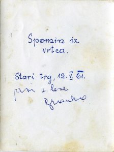 Nekdo, mogoče kar vzgojiteljica, je skrbno zapisala datum nastanka slike: 12. maj 1961, mama pa je pripisala “prvi z leve Branko”…Viri: