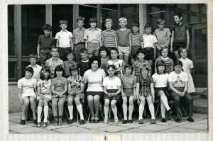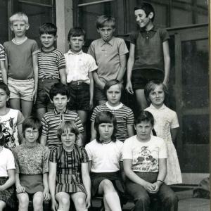 Pisalo se je šolsko leto 1973/74 in pred nami je 28 učencev 4.a razreda. Z njimi je tudi razredničarka Vika Tornič.