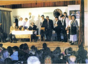 Čeprav se igralci na sokolskem odru večinoma ponavljajo, jih zaradi maske ne prepoznam. Glavno vlogo, vdovo Rošlinko, je igrala Vera Janežič (v narodni noši).