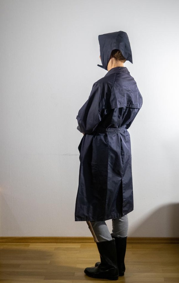 Lahek dežni plašč iz sintetičnega materiala, zložen v lični torbici iz enakega materiala, da se ga je dalo nositi v žepu ali torbici se je imenoval šuškavac. Moški je imel pripadajočo kapo, ženski ruto. Tretirali so ga kot prestižno oblačilo in ga nosili ob vseh priložnostih. Kupovali pa so ga, tako kot najlon srajce, na Ponte Rossu v Trstu. Še vedno imam oba – maminega in atovega. Zraven pritiče ustrezna obutev – gumijasti škornji, ki jih je zelo težko dobiti. Delajo le še plastične, ki hitro razpadejo. Tovarna mora delati in obstati.