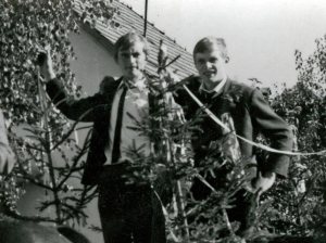 Fotografija je nastala pred hišo cerkniškega fotografa Jožeta Žnidaršiča v Cerknici.