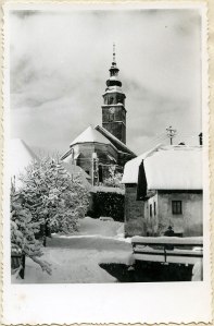 Fotografija iz zbirke Toneta Gornika z Rakeka je nastala pozimi okrog leta 1955. Fotografija prikazuje pogled od Rutarjevega mosta proti cerkniški cerkvi. Neznani fotograf se je postavil na levi breg potoka Cerkniščica in z Rutarjeve strani posnel to fotografijo.