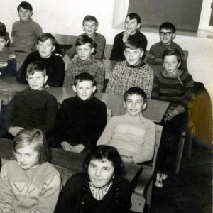V šolskem letu 1968/69 so se učenci iz podružnične šole Grahovo slikali kar dvakrat. Enkrat v razredu in drugič zunaj pred spomenikom. Današnja slika je iz razreda. Z njimi je slikan učitelj likovnega pouka Milan Rot, čeprav je na zadnji strani podpisana razredničarka Ivanka Orel.
