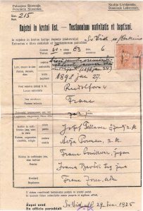 Shranjen imam rojstni in krstni list Franca Tekavca, to je mojega očeta. Dokument je bil prepisan iz krstne knjige 29. 3. (verjetno sušec) 1925. Lahko samo ugibam, kaj ga je takrat rabil, ko je bil star 27 let.