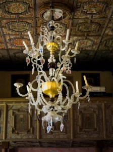 Lestenec v cerkvi sv. Petra na Dolenjem Jezeru je bil izdelan v steklarni za Karlovico (Foto: Miloš Toni).Slovarček:
