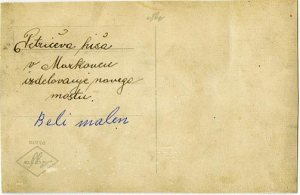 Z lepopisno pisavo je na hrbtno stran fotografskega papirja znamke Agfa nekdo zabeležil: “Petričeva hiša v Markovcu, izdelovanje novega mostu”, Ivanka Janežič pa pripisala “Beli malen”, kar je ključno.