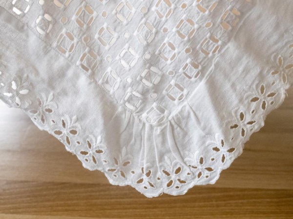 Bogato okrašeni kapici sta izdelani deloma strojno, deloma ročno, prav tako iz bombažnega blaga in čipk, zavezujeta pa se s svilenimi trakci.