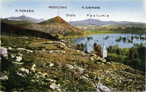 Kako je Italija ravnala in kakšne namene je imela, pa bo nekaj videti tudi s slike. Najprej preseneča pogled na golo pokrajino z zvonikom cerkvice v Velikem Otoku, kar vse je danes precej zaraščeno z gozdom. Fotografija je verjetno nastala spomladi ali jeseni, ko velike vode Pivke niso mogle hitro odteči v Postojnsko jamo. Posebej pa vzbudijo pozornost vzpetine, ki so naenkrat izgubile domača imena. Postojna je le še Postumia, Sovič nad mestom je postal Poggio (grič) Sovic, Jama je postala Grotte, Vremščica pa Monte Auremiano. Ihta novih oblastnikov za poitalijančevanjem je bila tedaj dobesedno brezmejna. Celo naši Slivnici onkraj državne meje Javorniku 1 so nadeli italijansko ime Monte Pomario, kar pomeni Hrib Sadovnjak (!). Na hitro je bilo treba vsa imena poitalijančiti in tako so se prebivalci Knežaka nekega jutra zbudili v Fontani del Conte (grofov vodnjak), ker je bil na sredi naselja vodnjak, beseda knežak pa spominja na kneza. Nanosa očitno ni bilo mogoče niti približno prevesti, pa je postal Monte Re (Gora Kralj). Snežnik je postal Monte Nevoso (Snežena gora), Ilirska Bistrica pa Villa del Nevoso (Snežena Vila). Naenkrat so prišli italijanski učitelji, ki slovensko niso znali, in v šolah so bili povsod napisi: Qui si parla soltanto italiano, tukaj se govori samo italijansko. Da so kmalu sredi Postojne podrli spomenik Miroslavu Vilharju (njegove so ponarodele Zagorski zvonovi, Na jezeru, Žalost, Napitnica …) je pa še v spominu. Danes spet stoji na istem mestu. Od leta 1923 so imele šole, uradi, cerkve, italijanske nazive, leta 1926 pa se je začelo še s posebno odredbo predpisano nasilno poitalijančevanje imen in priimkov prebivalcev.
