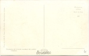 Razglednica je bila natisnjena v Milanu, datum ni naveden, zato je letnica 1930 le približna. Vsekakor je bilo to med letoma 1920 in 1943, ko je bila Postojna (ime ima menda po postojni, planinskemu orlu podobni ptici ujedi) tako kot vsa slovenska Primorska, del Kraljevine Italije. Ne pod Italijo, kot se rado reče zaradi grenkih spominov na ta čas, kajti tedaj je bil ta del našega narodnega ozemlja po Rapalski pogodbi med Kraljevino SHS in Kraljevino Italijo iz leta 1920, legalni sestavni del slednje.