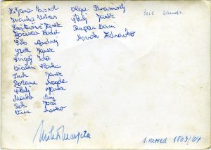 Podpis razredničarke, ki je zapisala tudi razred in šolsko leto. Sošolce si je zapisala Vanda.