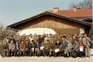 Na sliki udeleženci Občnega zbora Občinske zveze čebelarskih društev Cerknica 13.3.1983 na ploščadi ob Hotelu Jezeru. Občni zbor je bil obarvan še posebno svečano, saj so na njej podelili tudi priznanja.