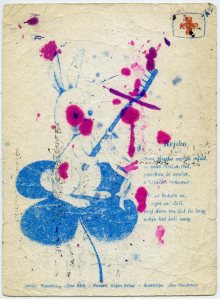 Na sliki je pivnik s sliko zajčka Jelke Reichman in pesmico Vojana Arharja. Založil in učencem razdelil jih je Republiški odbor Rdečega križa.