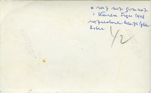 Zapis lastnika slike prof. Antona Avsca: ” III. raz. niž. gimnazije v Starem trgu 1948, razredničarka Marija Iglar.”