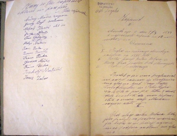 Zapisnik I. občinske seje dne 12. 2. 1899 leta.