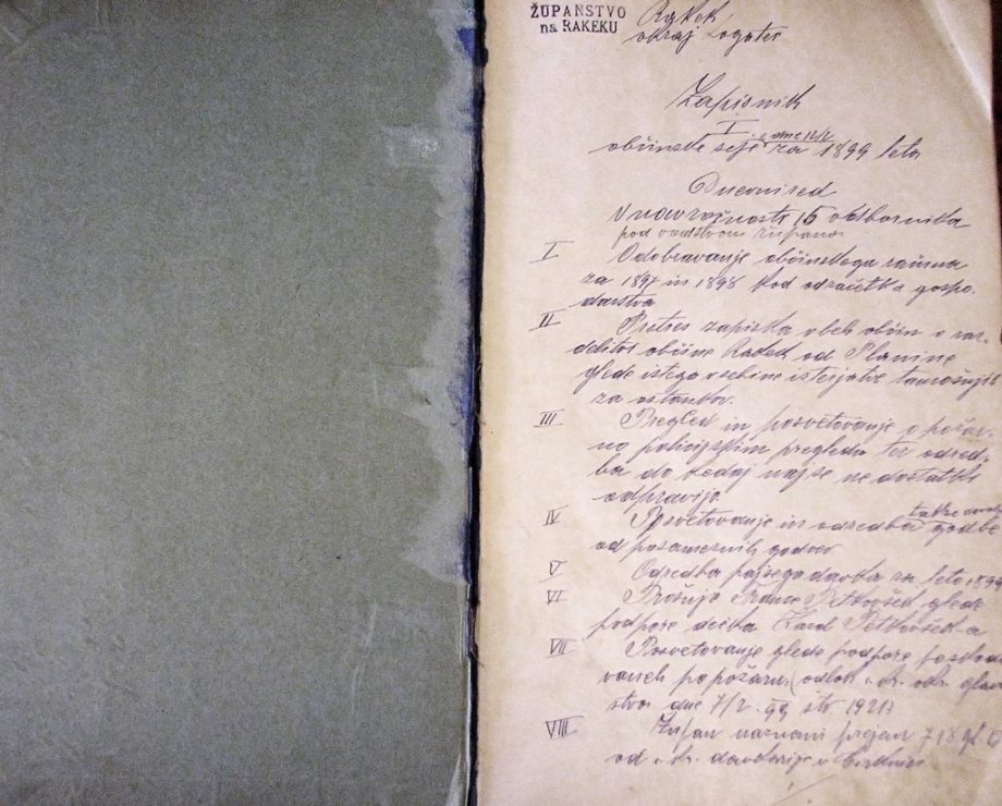 1899 Rakek – Zapisnik prve občinske seje županstva Rakek