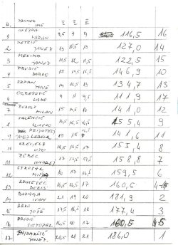 Rezultati na Občinskem prvenstvu v organizaciji mladinske organizacije Rakeka na Kilovcu 15. 2. 1973.
