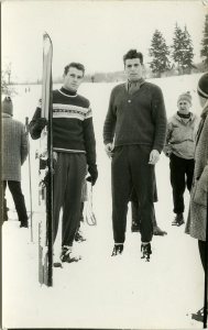 Miro, res si se potrudil in sistematično uredil zgodovino smučarskih skokov na Rakeku. Na sliki “Dovce okoli leta 1962” sta prva dva z leve Bločana: France Doles- Randolcov iz Velikih Blok in France Ivančič- Bafonov iz Nove vasi. Spomnim se jih, kako so skakali na Liscu v Velikih Blokah. Ravnatelj Čebohin je dal tam postaviti skakalnico v osojni Marentovi dolini. Kolikor se spomnim je “nesla” okoli 25m.