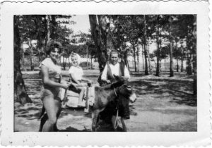 Mali bratranec je zelo užival na oslu. Mamica ga je posadila nanj in je pri tem povsem pozabil na težave z ušesi. Tako nam je vsak prihod domačinov popestril letovanje.