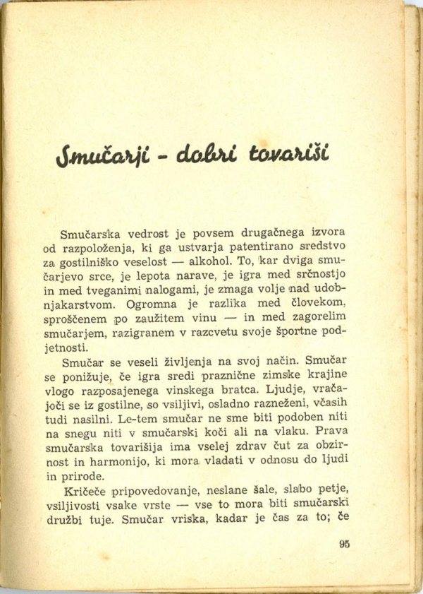 V zadnjem poglavju »O organizaciji smučarskega udejstvovanja« opiše posamezne discipline in navodila tekmovalcem.