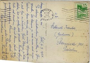Razglednico je poslal Ivanki nekdo, ki sicer lepo piše. Jaz pa kljub temu ne znam prebrati njegovega imena.
