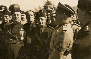 Devetnajstega septembra 1938 je Mussolini obiskal Kačjo. V svetli uniformi je Duce osebno, za njim se skriva grof Ciano.