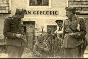 Gospod v civilu je Ivan Gregorič, fantiček z zvončki je njegov sin Andrej. Eden od italijanskih zavojevalcev je Ferrucio Marchi, ki je bil vodja fašistov na Rakeku. Čisto po italijansko se prilizujejo, so nasmejani. Očeta Ivana pa so kasneje poslali v internacijo, kjer je tudi umrl.